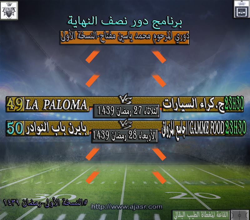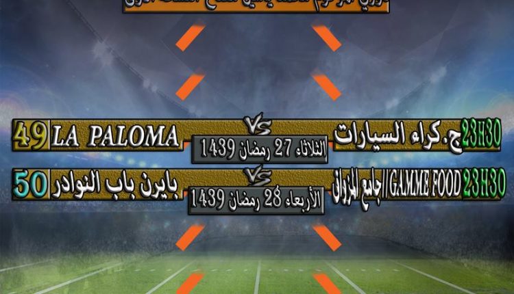 سيشهد دور ربع النهاية من دوري المرحوم محمد ياسين مفتاح في نسخته الأولى مواجهة ستجمع بين فريق GAMME FOOD وفريق جامع مزواق وذلك يوم الإثنين 26 رمضان الموافق ل 11 يونيو 2018 على الساعة 23:30 الحادية عشر والنصف ليلا بالقاعة المغطاة الطيب البقالي وسيعرف اللقاء تنافس كبير بين فريقين بخاصيات متفاوتة ففريق جامع المزواق المدعوم جماهيريا سيكون مطالبا بتصحيح أخطاء المباراة السابقة التي عانى فيها كثيرا والدخول بتركيز عالي في مباراة هي مفتاح القفل للمرور لدور نصف النهائي ومواصلة المشوار في الدوري عكس فريق GAMME FOOD الفريق الذي تطور مستواه بعد تعزيز تركيبته البشرية وأصبح يخطوا بخطى ثابتة وبدأ الطموح يكبر يوم بعد يوم للذهاب بعيدا في منافسة الدوري وسيكون عليه إثبات ذلك في هذه المباراة لذلك ستكون جماهير الدوري على موعد مع قمة مباريات دور ربع النهاية مباراة تعد بالكثير وستكون طابق كروي جميل سيتمتع به الجمهور الرياضي وستحتفظ بكل أسرارها إلى ما بعد إعلان صافرة نهاية المباراة لنتعرف سويا عن الفريق الذي سيظفر بآخر بطاقة العبور للمربع الذهبي.