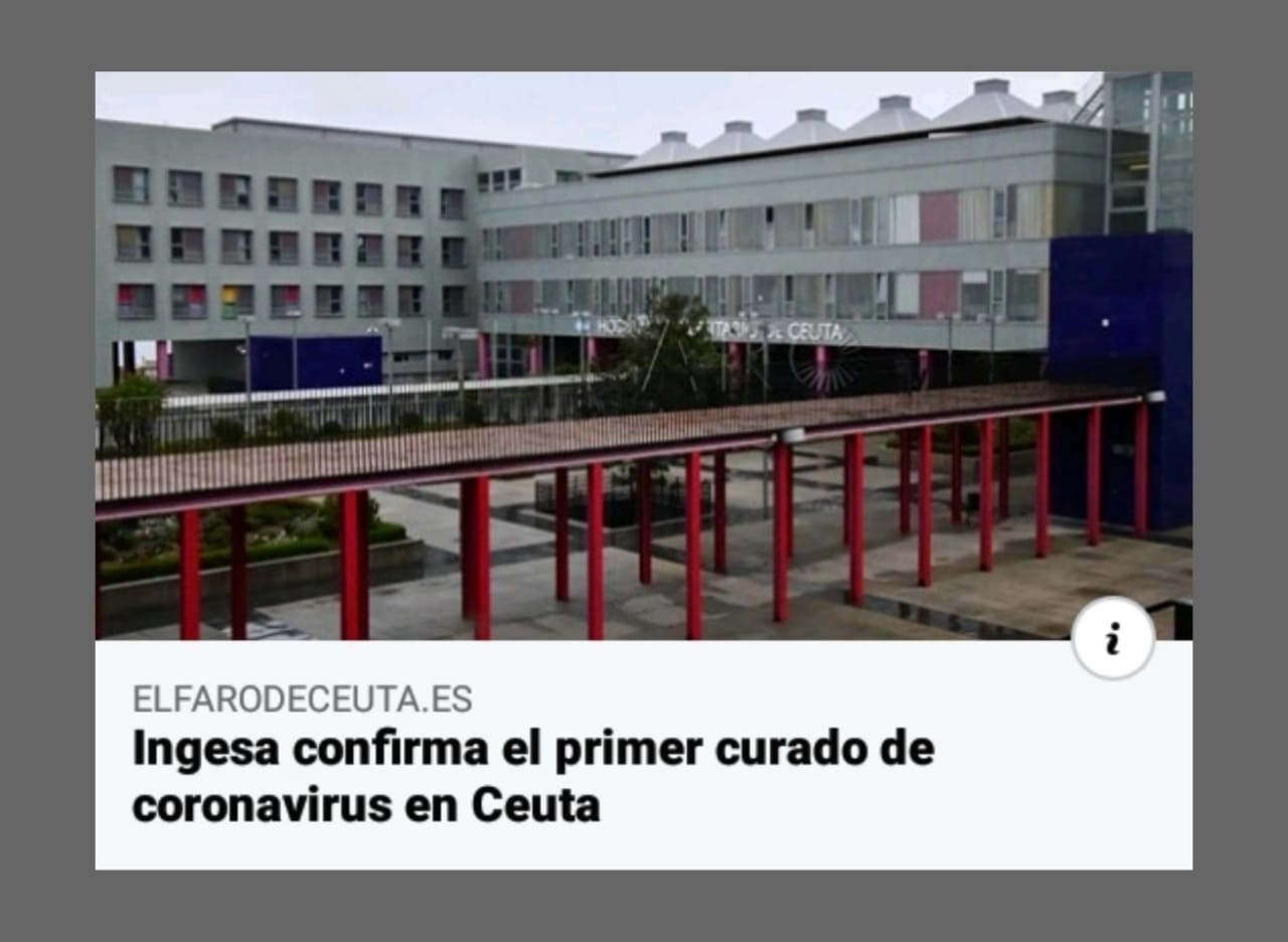 أكدت إنجيسا أول حالة شفاء من فيروس كورونا في سبتة. وتعد هذه النقطة الإيجابية الثالثة الجندي الذي كان في المدينة، والذي تبين، بعد أيام من تشخيص حالته أنه سلبي بعد فحص PCR للمرة الثانية.