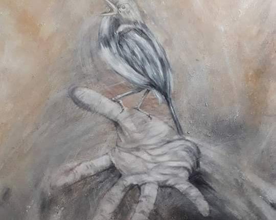 في هذه اللوحة التشكيلية للفنان محمد بوزباع ثمة غرابة لايلاحظها المتأمل منذ الوهلة الأول، فمن جهة نرى اليد المفتوحة المبسطوطة أفقيا، اليد ذات الخطوط المتعرجة، أو ذات التعرجات، والطائر الذي لايطير، والذي يقف على اليد المفتوحة المبسوطة عموديا، بمعنى أن ثمة في اللوحة غرابة، فاليد في الأسفل، والطائر في الأعلى، لاشيء واضح حتى اللحظة. بيد أن الطائر يفتح منقاره كما هي اليد مفتوحة، والفتح في تصوري دلالة على أن ثمة حركة ما، وهذه الحركة هي من عمل اليد، كما أن الطائر لايستقر على حال، حتى وإن عاد إلى عشه، فهو سرعان مايغادره، فمكانه ليس العش، وإنما السماء، والتحليق في السماء، ولكننا الآن نحن أمام لوحة خارقة للعادة، لوحة تشكيلية لاتقول لنا شيئا سوى أن هذه يد، وهذا طائر!… وماذا لو كانت هذه اليد التي تمنح ببسطها بطلاقة الطائر حريته التي هي من طبيعته، بلاجسد، بلاوجه، أو لنقل، بشكل أفضل بلارأس (نعرف أن اليد بشرية)، ولابد أن يكون لها جسد برأس، لكننا أمام يد فقط، وعندما لايكون ثمة رأس وإنما يد فقط التي هي جزء من الجسد، يغيب الكلام، فنحن لانتكلم باليد، وإنما باللسان، وحين لاتكون إلا اليد هي الماثلة في اللوحة، فإن الأمر يعني أن هذه اليد شقية وبريئة، لاتقبض على الطائر، ولاتسحره، وإنما تمنحه حريته التي هي، في الأصل، من طبيعته. هل يمكننا القول إن هذه اللوحة، التي رسمها الفنان التشكيلي محمد بوزباع هي لوحة عن الحرية تلك الثيمة التي تغنى بها الشعراء والأدباء والفنانون وناضل من أجلها آخرون، وغيرهم؟!، وهل هذه هي مقصدية بوزباع من رسم هذه اللوحة؟!… ماذا يخفي عنا بوزباع في هذه اللوحة الغريبة؟!… قبل الجواب عن هذه الأسئلة لنعد إلى الطائر، فهذا الطائر يفتح منقاره كمالو أنه يتكلم، وبالتالي، نرى رأسه، وهو ينظر بعينه إلى الأفق، إنه يغوينا، ويسحرنا، فهو لاينظر إلى الأفق فحسب، أو إلى اليد التي تمنحه الحرية ليطير، إلا أنه واقف عليها، ويصدر صوتا، إنه نقيض اليد، ولكنه ينظر إلينا نحن أيضا بعين واحدة. إن بوزباع ليست مقصديته في هذه اللوحة أن يؤنسنا بثيمة الحرية، ويظهر لنا اليد التي تحرر طائرا رمادي اللون بنقط سوداء وتحيط به ألوان ممتزجة مرئية في اللوحة لاتحتاج إلى وصف، ومن تحت اليد لوينات متموجة حيث يمتزج الرمادي والأسود، كدلالة على الحزن والالتباس، وإنما يكلمنا عن شقاء اليد التي تعمل، وتكدح، بإنهاك، يد تطمح أن تتحرر، وتنفلت من كل قيد، أو ” قانون”. إنها ليست إلا يد الفنان.