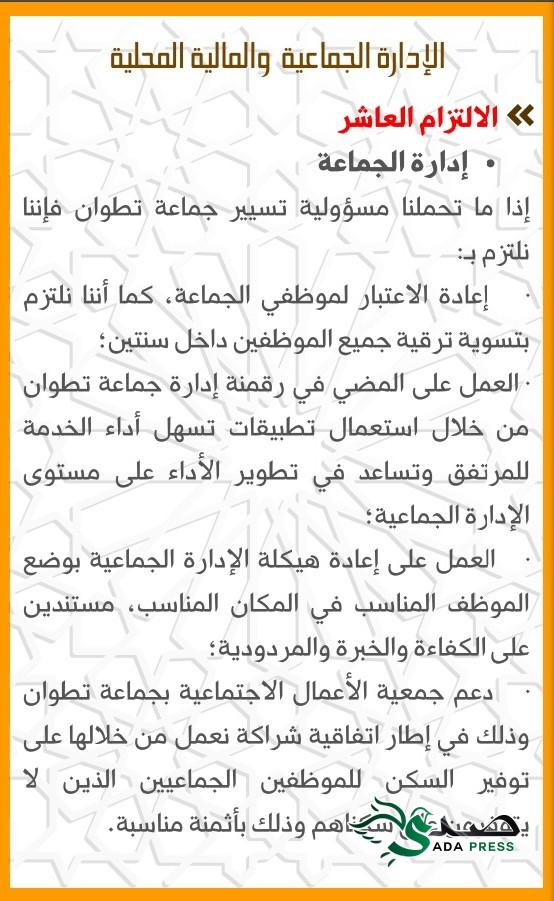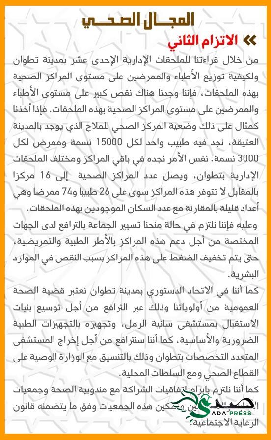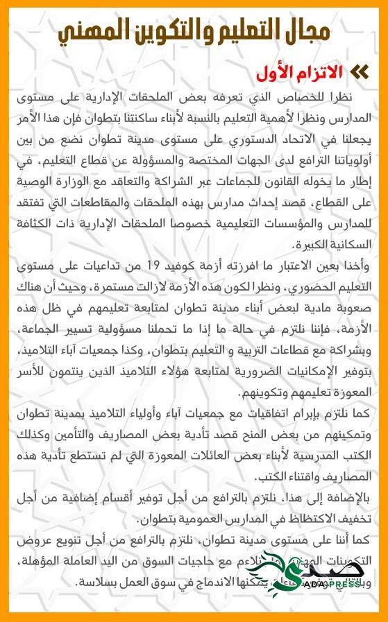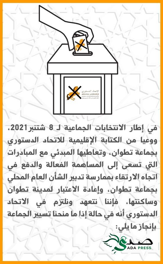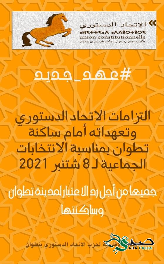 في سابقة من نوعها الاتحاد الدستوري بمدينة تطوان يقدم اثنى عشر التزاما وتعهدا مع ساكنة تطوان أخبارصدى انتخابات Last updated أغسطس 29, 2021 انشر في خطوة هي الأولى من نوعها وسابقة لا مثيل لها، الاتحاد الدستوري بمدينة تطوان يقدم اثنى عشر التزاما وتعهدا مع ساكنة تطوان بمناسبة الانتخابات الجماعية ل 8 شتنبر 2021 ،التزامات واقعية وعملية تشكل إجابة حقيقية على مختلف ابمشاكل التي تعيشها جماعة تطوان .