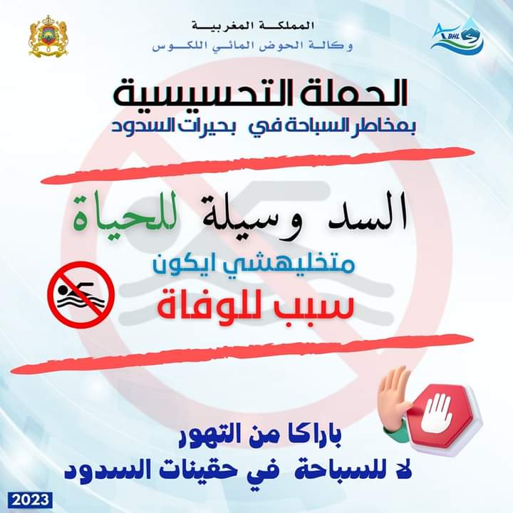 وتحت شعار “ السد وسيلة للحياة ، متخليهش ايكون سبب للوفاة” حيث ستشرع وكالة الحوض المائي اللكوس يوم الإثنين 22 ماي الجاري ، بإطلاق حملتها التحسيسية وفق برنامجين: