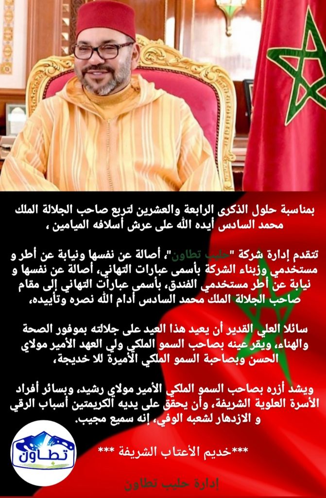 تهنئة مرفوعة إلى حضرة صاحب الجلالة الملك محمد السادس نصره الله بمناسبة عيد العرش المجيد”حليب تطاون