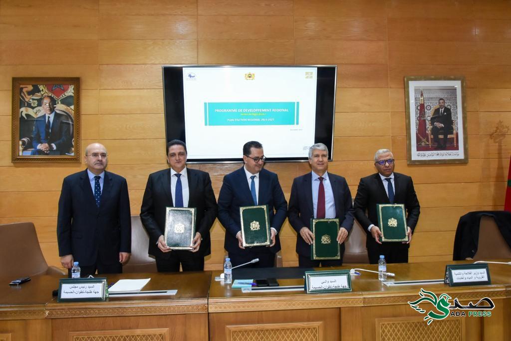 تم اليوم إنجاز خطوة بارزة في مسار تحقيق التنمية الشاملة والمستدامة لجهة طنجة-تطوان-الحسيمة، وذلك من خلال التوقيع على اتفاقية إطار، واتفاقية خاصة، بين السيد عمر مورو، رئيس مجلس الجهة، والسيد يونس التازي، والي الجهة، والسيد محمد صديقي، وزير الفلاحة والصيد البحري والتنمية القروية والمياه والغابات، والسيد توفيق مشرف، الكاتب العام لوزارة الصناعة والتجارة. وتندرج هذه الشراكة الاستراتيجية في إطار برنامج التنمية الجهوية 2022-2027، وخصص لها غلاف مالي يقدر ب 887 265 1 ألف درهم، وهي شراكة تهدف إلى تعزيز المجالات الرئيسية لقطاع الفلاحة.
