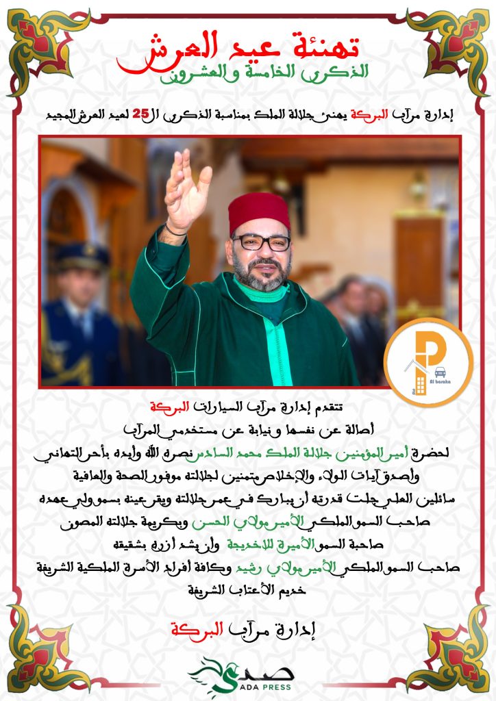 تهنئة إلى صاحب الجلالة الملك محمد السادس بمناسبة عيد العرش المجيدبمناسبة حلول الذكرى الخامسة والعشرين لاعتلاء صاحب الجلالة والمهابة الملك