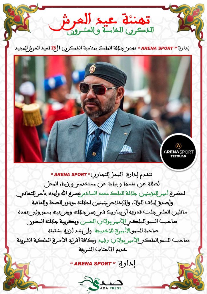 إدارة “ARENA SPORT” تهنئ جلالة الملك بمناسبة الذكرى ال 25 لعيد العرش