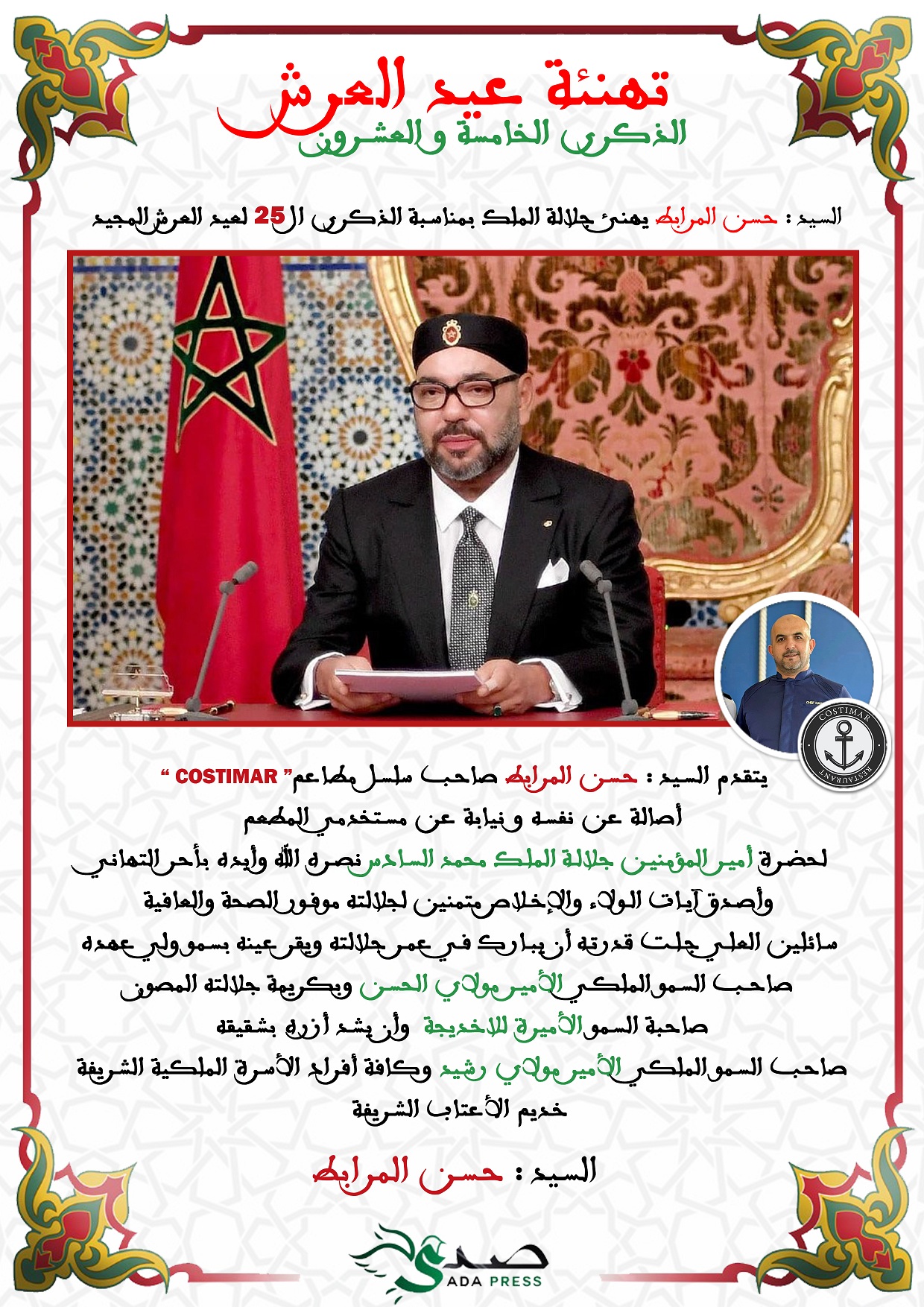 السيد حسن المرابط يهنئ جلالة الملك بمناسبة الذكرى 25 لعيد العرش المجيد