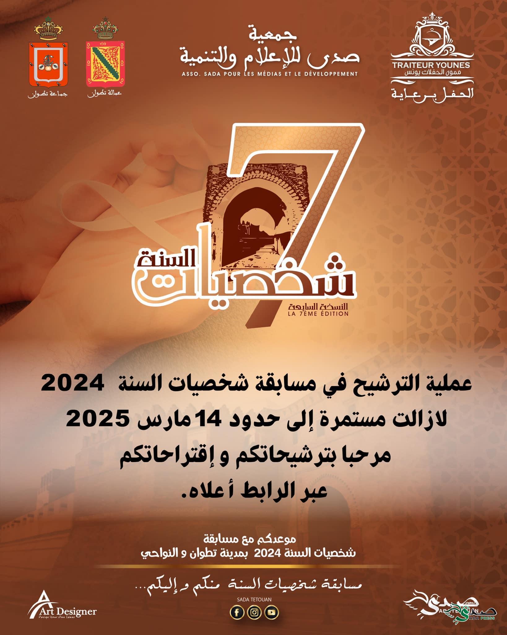 عملية الترشيح لمسابقة “شخصيات السنة 2024” لا تزال مستمرة! أخبار دولية On مارس 11, 2025 انشر تستمر عملية استقبال الترشيحات والاقتراحات لغاية 14 مارس 2025، حيث يمكنكم المساهمة في اختيار الشخصيات البارزة التي تركت بصمتها خلال العام. شاركونا بترشيحاتكم واقتراحاتكم، فصوتكم يصنع الفرق! الرابط هنا https://docs.google.com/…/1FAIpQLSfZW6l…/viewform #شخصيات_السنة_2024 #صوتك_يحدد_الأفضل #Sada_Tétouan