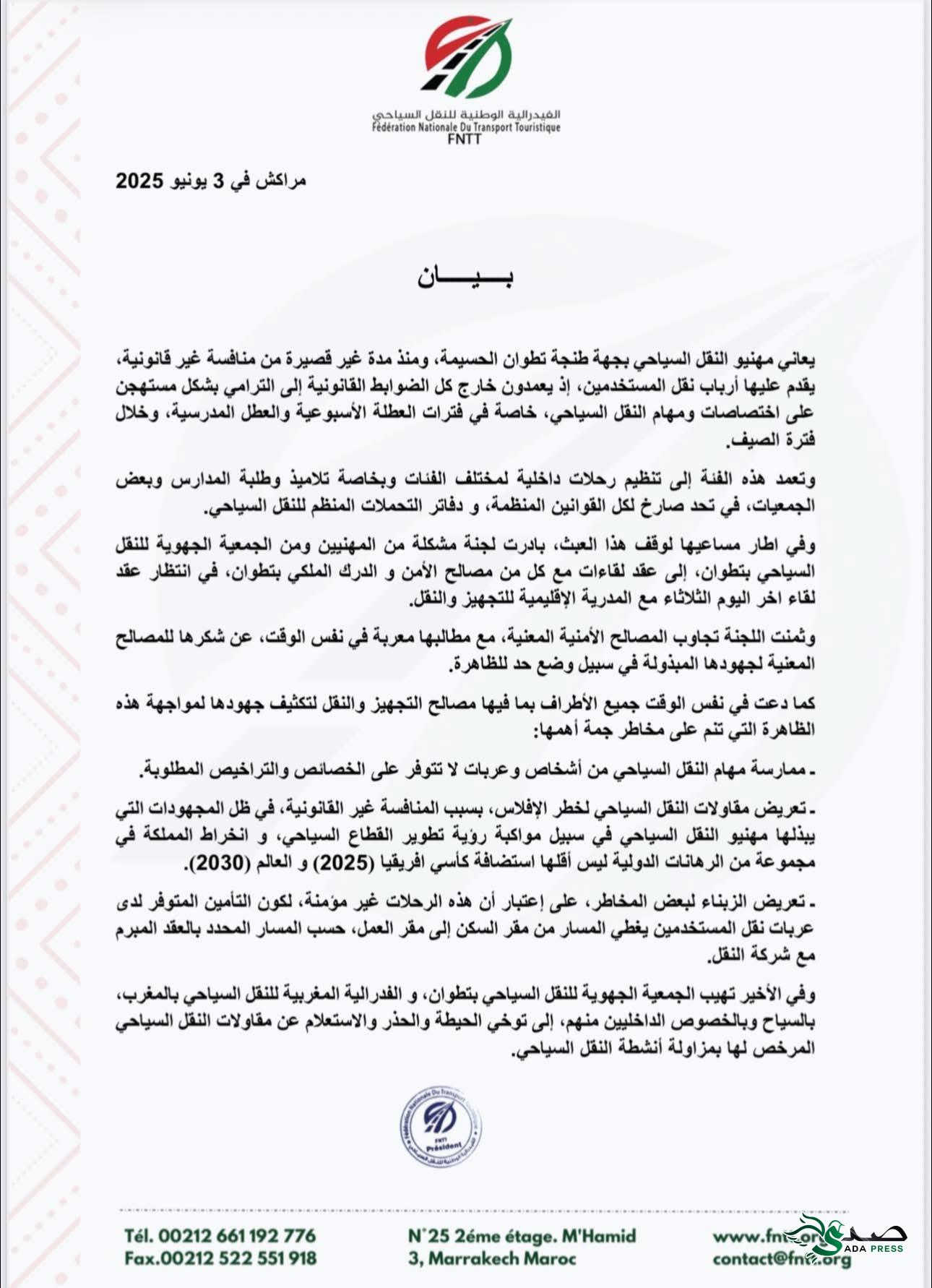 📢 بلاغ مهني هام من الفيدرالية الوطنية للنقل السياحي