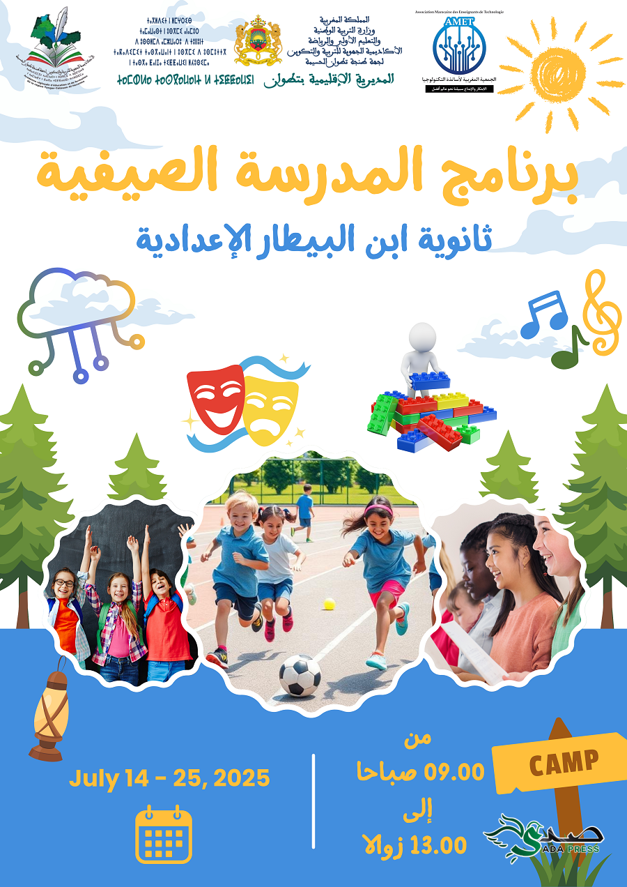 ويُراهن هذا البرنامج التربوي الصيفي على تنمية كفايات المتعلمين ودعم استعدادهم النفسي والتربوي للمرحلة المقبلة، من خلال أنشطة متنوعة تشمل المسرح، الإلقاء، السمعي البصري، المهارات الذهنية، البرمجة والروبوتيك، والثقافة المقاولاتية، في جوّ من التفاعل والتحفيز، يروم استعادة الثقة وبناء دافعية التعلم.