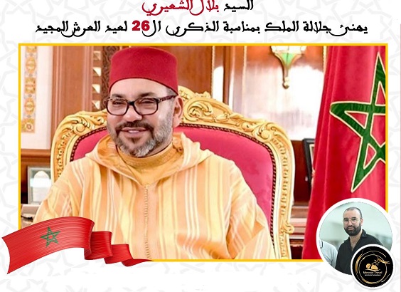 السيد بلال الشعيري يهنئ جلالة الملك بمناسبة الذكرى ال 26 لعيد العرش