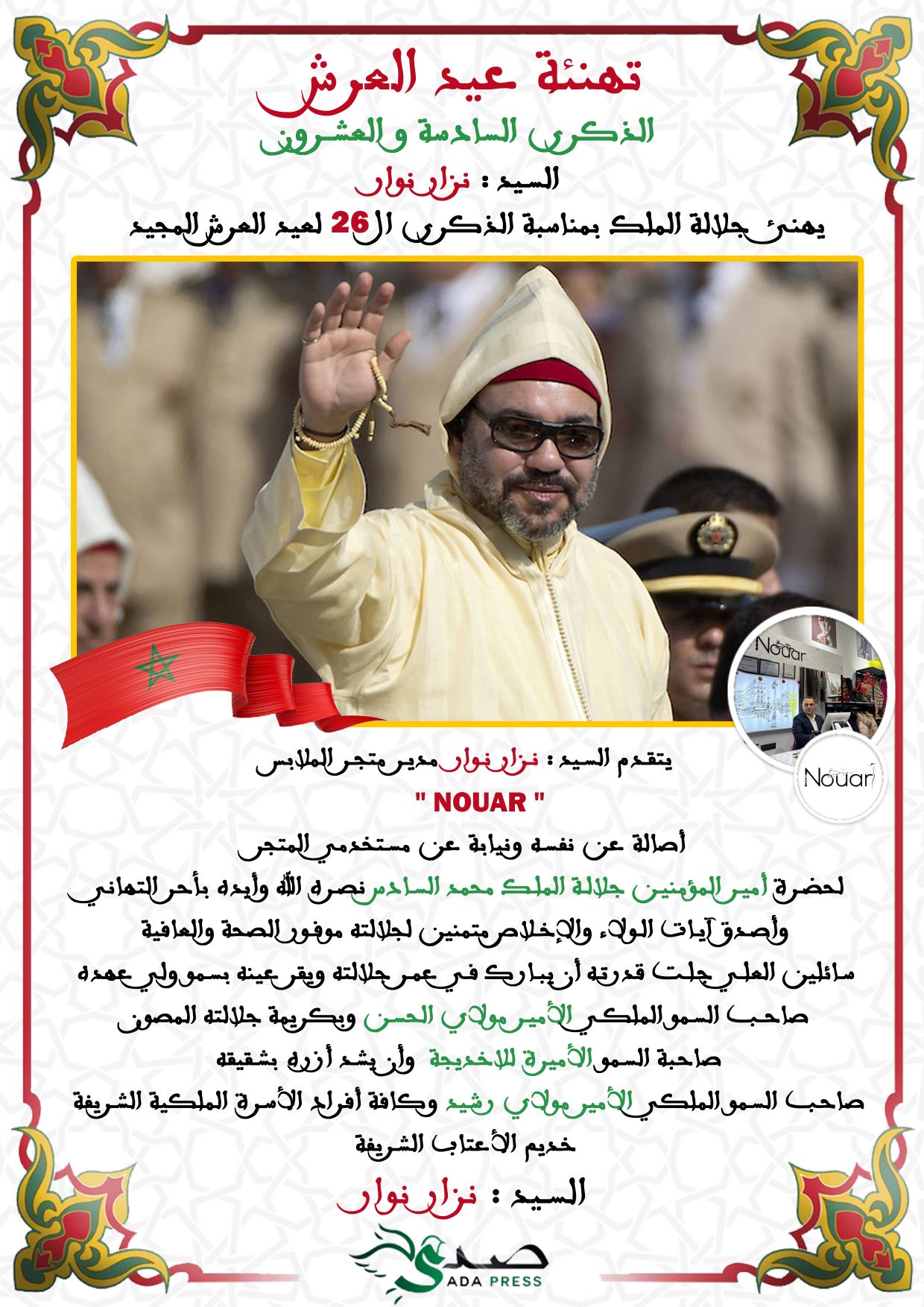 بمناسبة حلول الذكرى السادسة والعشرون لاعتلاء صاحب الجلالة والمهابة الملك