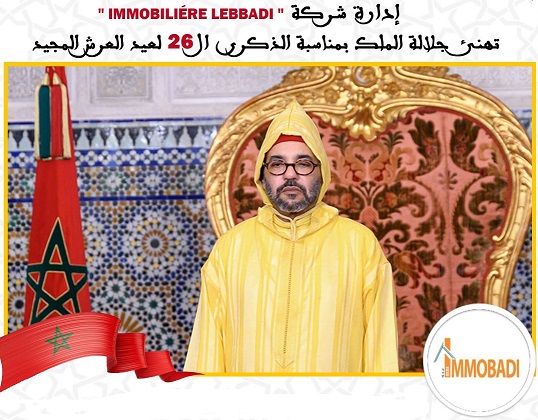إدارة الشركة العقارية اللبادي تهنئ جلالة الملك بمناسبة الذكرى ال 26 لعيد العرش