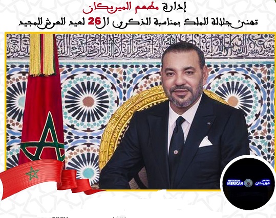 إدارة مطعم الميريكان تهنئ جلالة الملك بمناسبة الذكرى ال 26 لعيد العرش