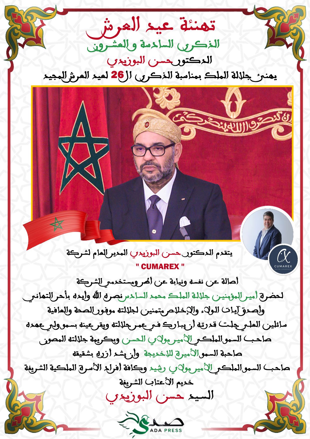 تهنئة بمناسبة الاحتفال بالذكرى ال26 لعيد العرش المجيد