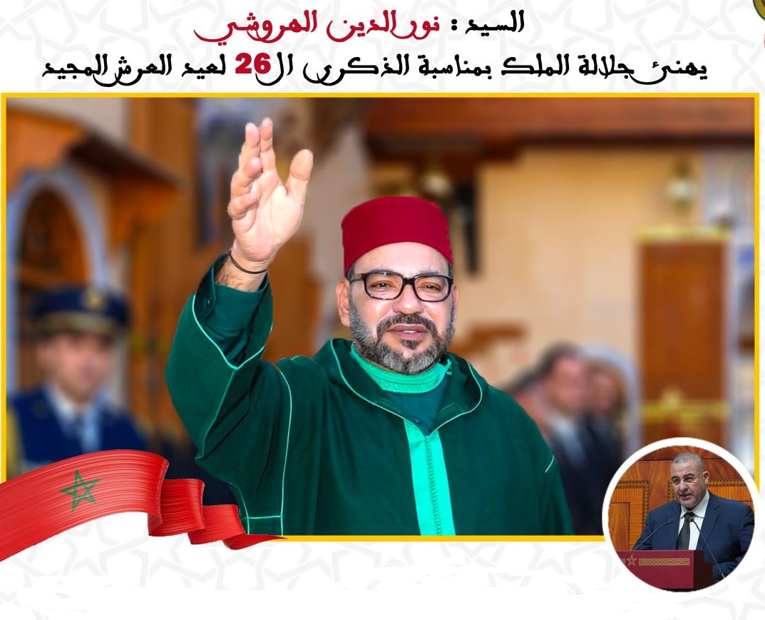 السيد نورالدين الهروشي يهنئ جلالة الملك بمناسبة الذكرى ال 26 لعيد العرش