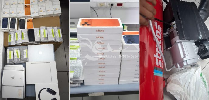 وخلال عملية التفتيش، أسفرت المراقبة المعمقة عن العثور على 45 هاتفًا ذكيًا من نوع iPhone 16 وiPhone 17. كما تم حجز 45 هاتفًا آخر من نوع Samsung، إلى جانب مجموعة من الأجهزة الإلكترونية المختلفة.
