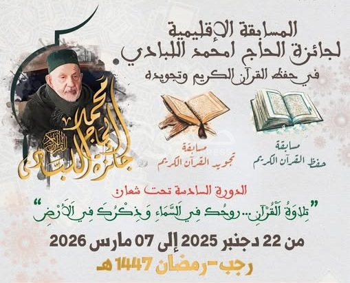 تنهي اللجنة التنظيمية عن تحيين مواعيد جائزة الحاج امحمد اللبادي في حفظ القرآن الكريم وتجويده في دورتها السادسة.