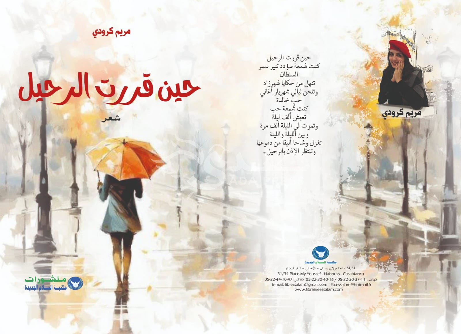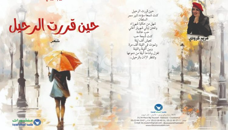 في تجربة شعرية جديدة تنبض بالحس الإنساني العميق، أصدرت الشاعرة المغربية مريم كرودي ديوانها الشعري الجديد الموسوم بـ”حين قررتُ الرحيل”، عن منشورات مكتبة السلام الجديدة.